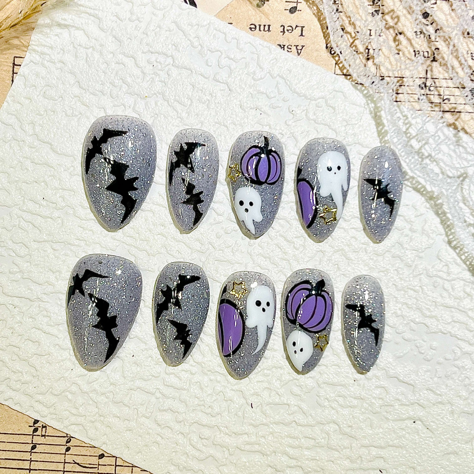 Get ready to shimmer and spook this Halloween with our dazzling Glitter Ghost & Bat Press-On Nails! 🦇💜 This enchanting set combines classic festive fun with a touch of glamorous sparkle, perfect for those who love to celebrate the spooky season in style.