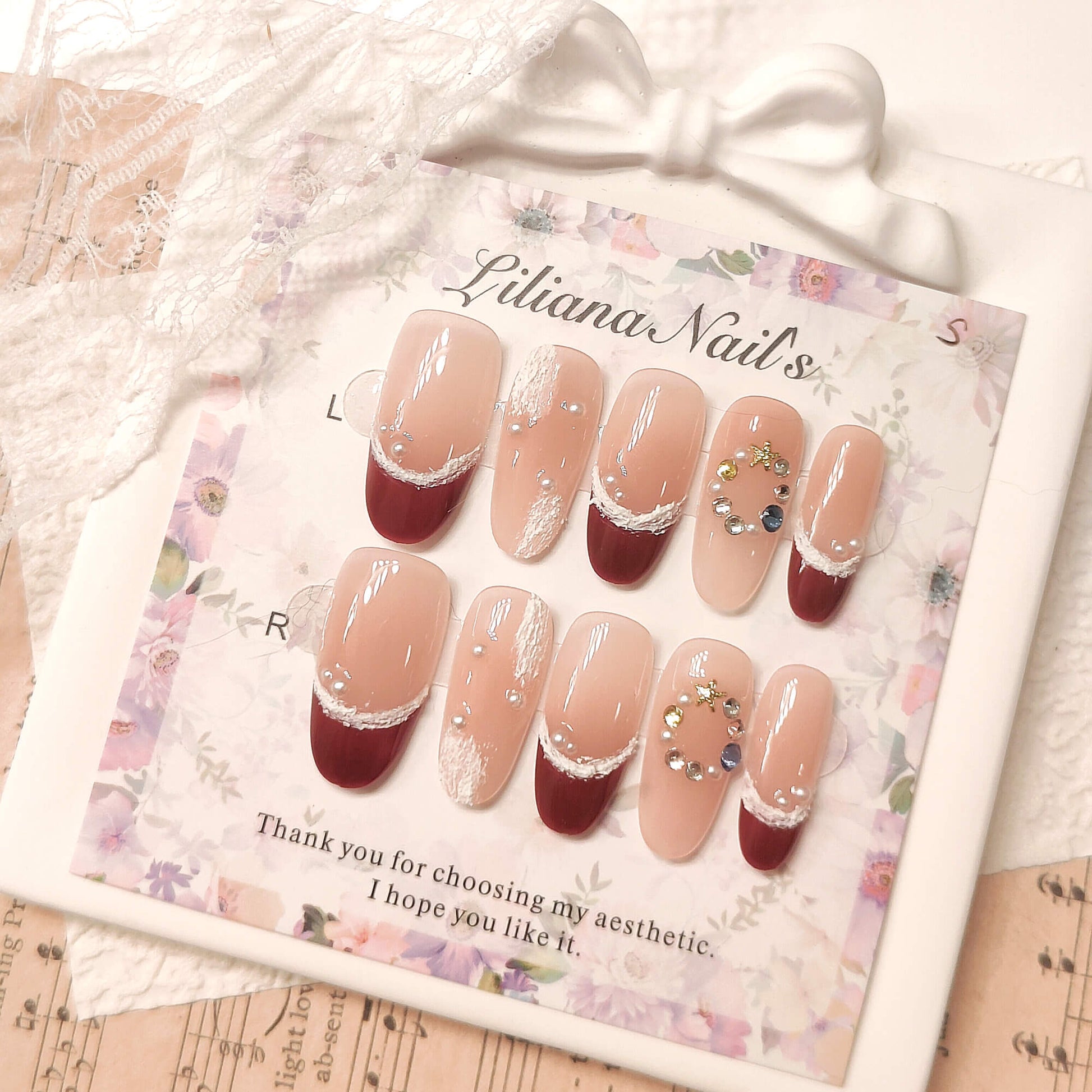 Mixed Christmas Press on Nails | 3D Bow, Gingerbread, Red & Black Nails, "Holiday Party" Sweater Texture Fake Nails