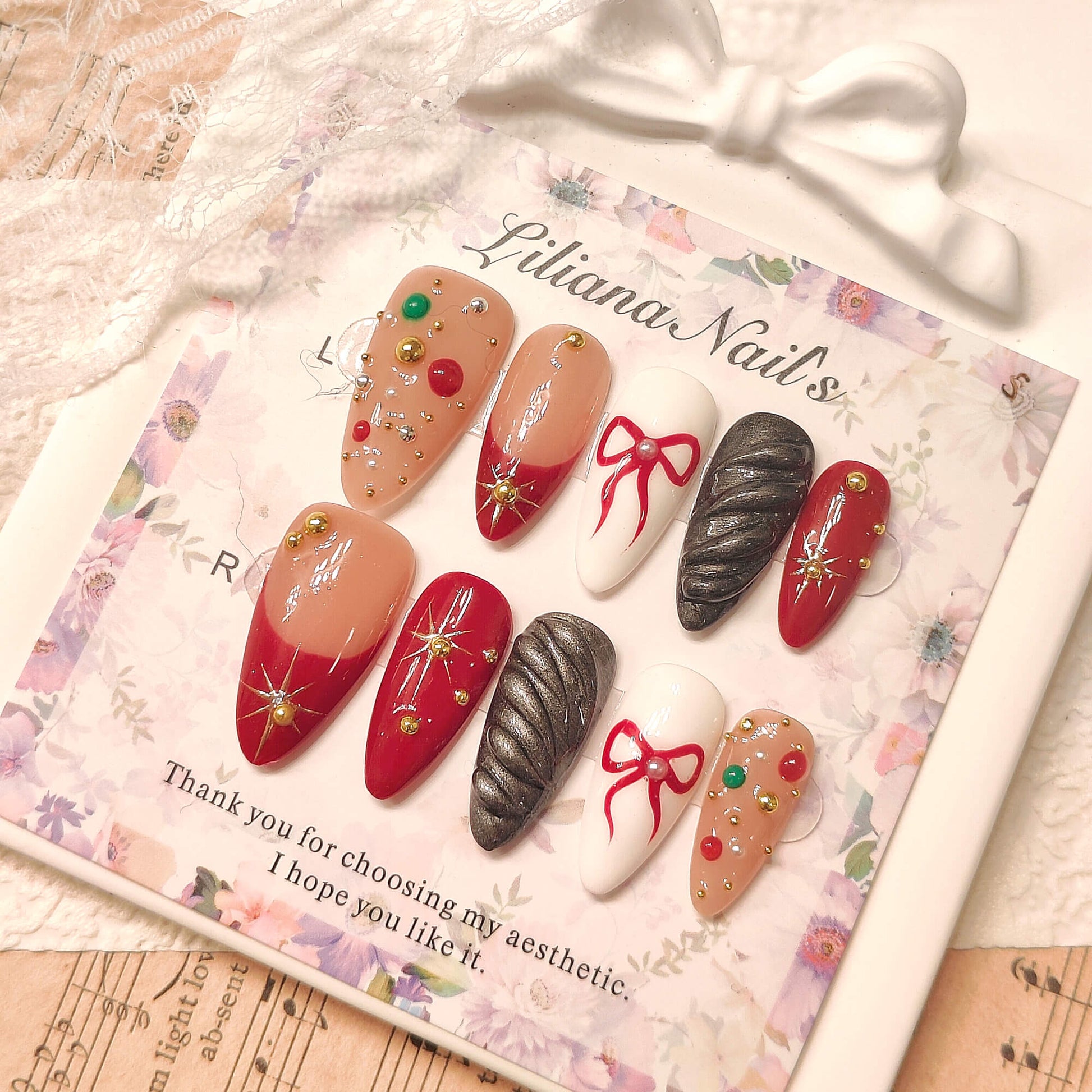 The "Lace Trim": A delicate, hand-painted white lace design that lines the French tip, adding a soft, vintage feel.